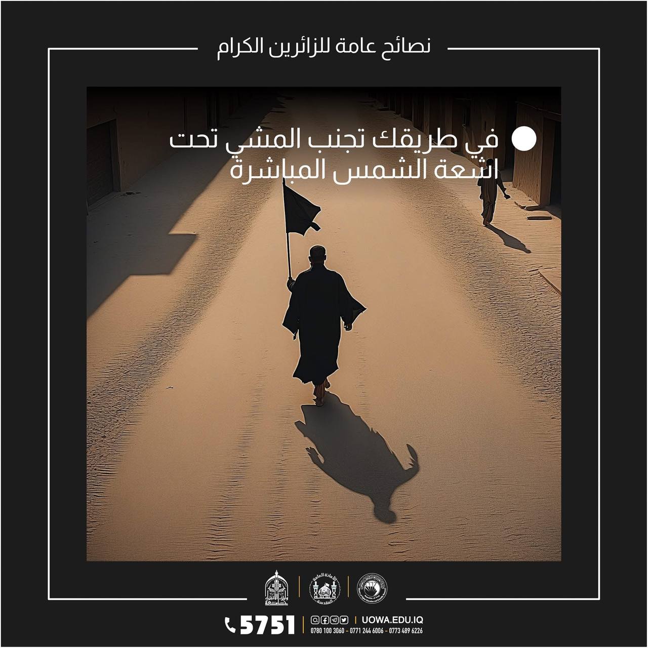 بالتزامن مع زيارة أربعينية الإمام الحسين (عليه السلام) في كربلاء، يُنصح الزائرون بالالتزام بالتعليمات الصحية والخدمية، والحفاظ على البيئة العامة والتعاون مع الفرق التطوعية. وتأتي هذه الإجراءات انسجاماً مع الهدف الثالث من أهداف التنمية المستدامة (الصحة الجيدة والرفاه) عبر حماية صحة الزائرين، والهدف الثاني عشر (الاستهلاك والإنتاج المسؤولان) من خلال تقليل النفايات والحفاظ على الموارد، فضلاً عن دعم الهدف السابع عشر (عقد الشراكات لتحقيق الأهداف) عبر التعاون بين الزائرين والجهات الخدمية والمتطوعين.