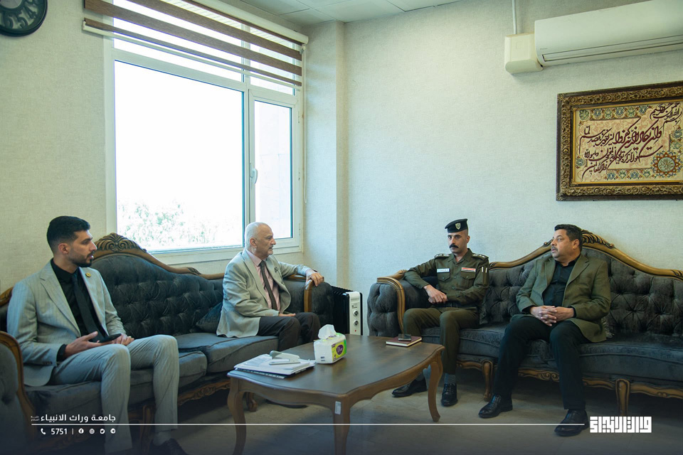 استقبل المساعد الإداري لرئيس جامعة وارث الأنبياء الأستاذ الدكتور نوفل الأعرجي وفدًا من قيادة شرطة محافظة كربلاء المقدسة برئاسة مدير قسم الشهداء والجرحى.
