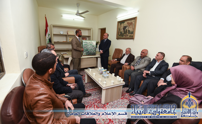 زار وفد من جامعة كربلاء جامعة وارث الانبياء  من اجل تبادل الخبرات وفتح افاق التعاون بين الجامعتين حيث قدم رئيس الوفد الدكتور علي كريم خضير عميد كلية التمريض في جامعة كربلاء التهاني للجامعة وخص الدكتور خميس بندرعبيد عميد كلية التمريض في جامعة وارث الانبياء بلتبريكات متمنيا له وللجامعة كل التوفيق في مسيرتهم العلمية خدمة للمجتمع