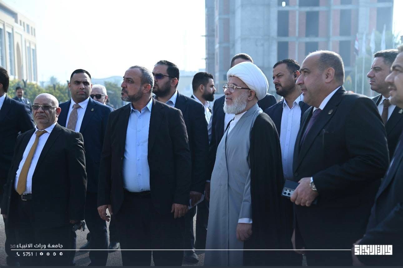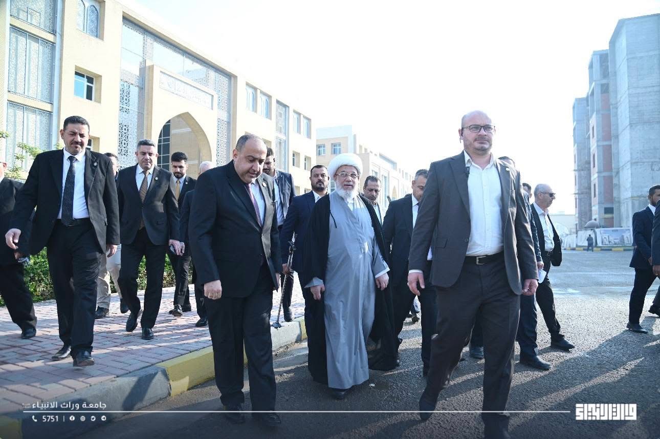 زار ممثل المرجعية الدينية العليا سماحة الشيخ عبد المهدي الكربلائي،اليوم جامعة وارث الأنبياء(عليه السلام) حيث كان في استقباله رئيس الجامعة الأستاذ الدكتور إبراهيم سعيد الحياوي، لإجراء جولة تفقدية والاطلاع على مشاريع التوسعة والتطوير الجارية داخل الجامعة.