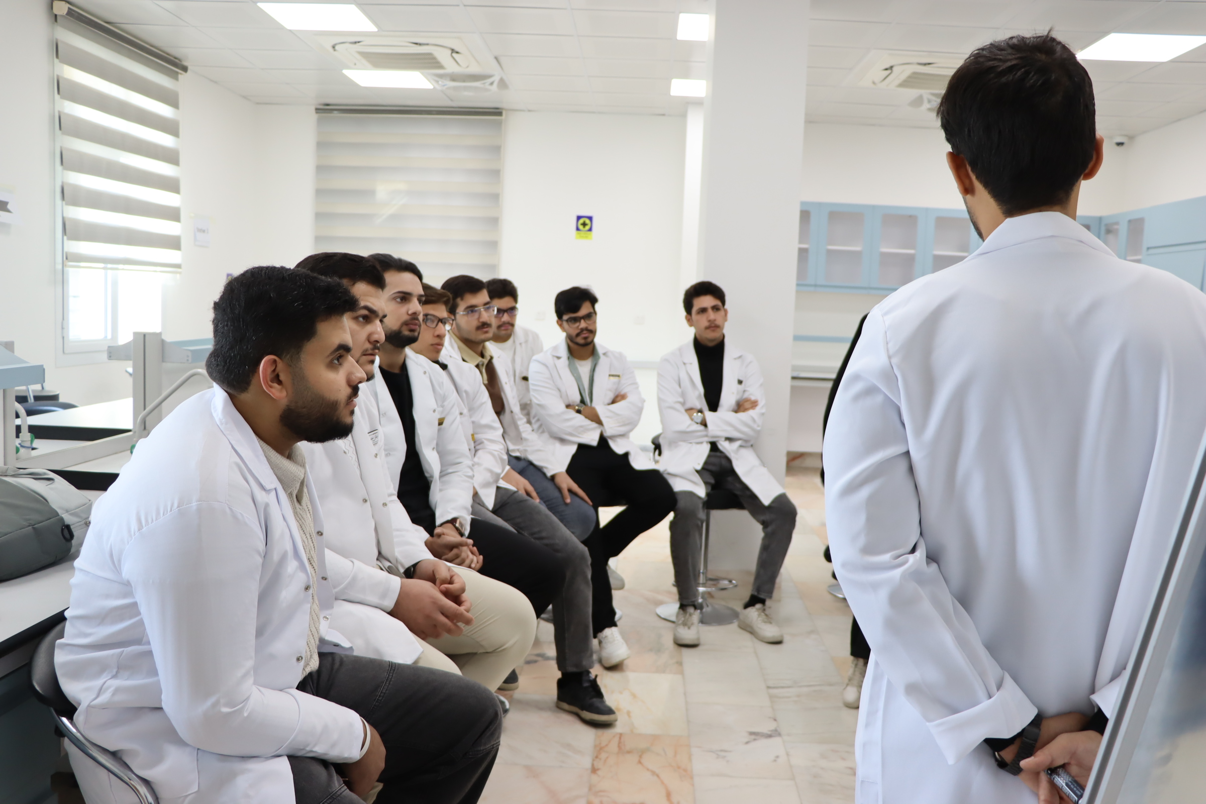 زيارة عميد كلية الطب في جامعة وارث الأنبياء (ع) لقاعات ومختبرات الكلية ولقاء كروبات العملي والمعيدين