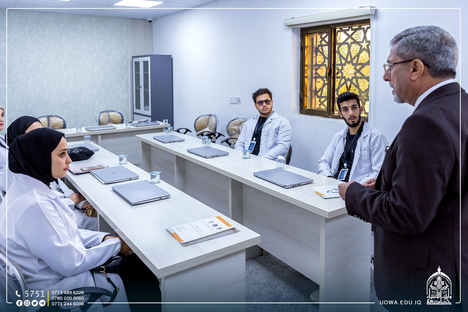An introductory tour for the Faculty of Medicine students at Warith Al-Anbiyaa University at the "National Center for Medical Competence Assessment" of the Health and University Education Authority, where Dr. Sabih Al-Mashhadani gave an introductory explanation of the center and its importance in practical training for medical students.