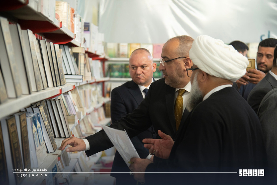 In commemoration of the birth anniversary of Lady Zainab al-Kubra (peace be upon her), Warith Al-Anbiyaa University (peace be upon him) hosted the exhibition “Al-Shajarah Al-Tayyibah lil-Kitab” organised by the Festival and Religious Events Department of the Holy Al-Hussain Shrine Secretariat, with the presence of the University President, Prof. Dr. Ibrahim Saeed Al-Hayyawi, along with faculty members and students.
