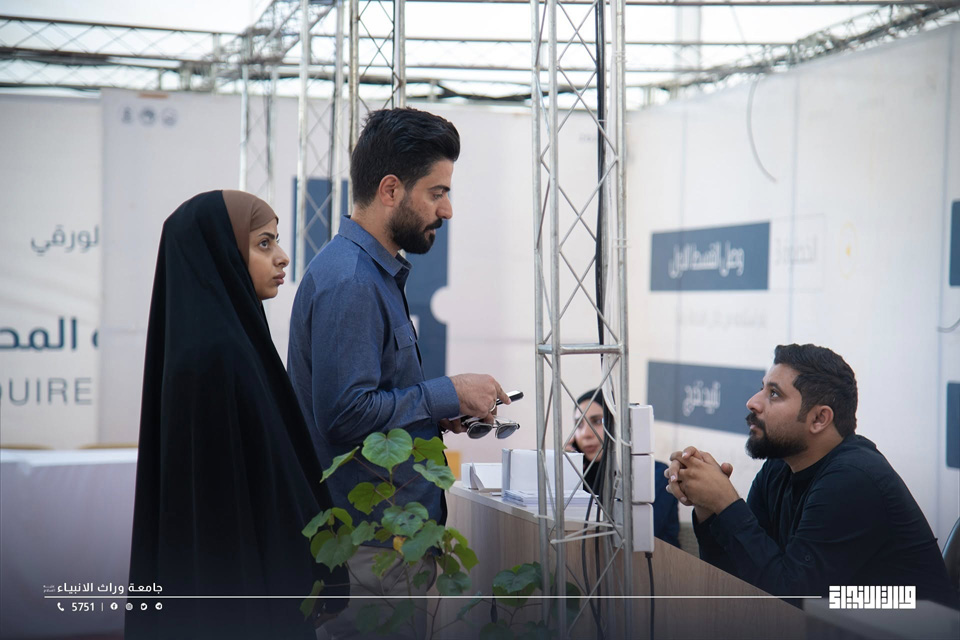 On the occasion of the birth anniversary of Lady Zaynab (peace be upon her), Warith Al-Anbiyaa University (AS) hosted the “Good Tree of the Book” exhibition, organized by the Department of Religious Festivals and Occasions at the Holy Husayni Shrine, with the presence of the University President, Prof. Dr. Ibrahim Saeed Al-Hayawi, along with faculty members and students.
